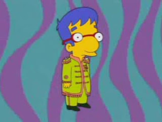 Bart usa uma peruca Beatle como disfarce para se infiltrar em Shelbyville.